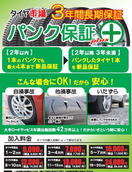*タイヤ購入(4本購入時のみ加入出来ます)の際には、是非とも加入を宜しくお願い致します!!