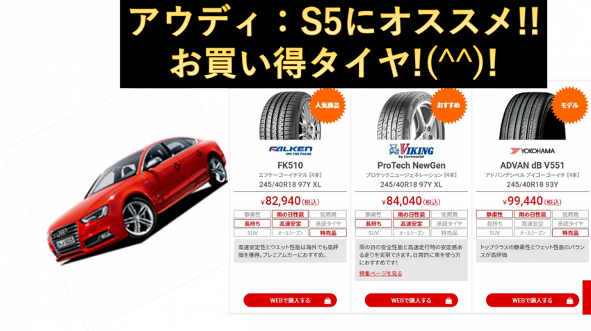 アウディS5にオススメのお買い得タイヤをご紹介致します!(^^)!