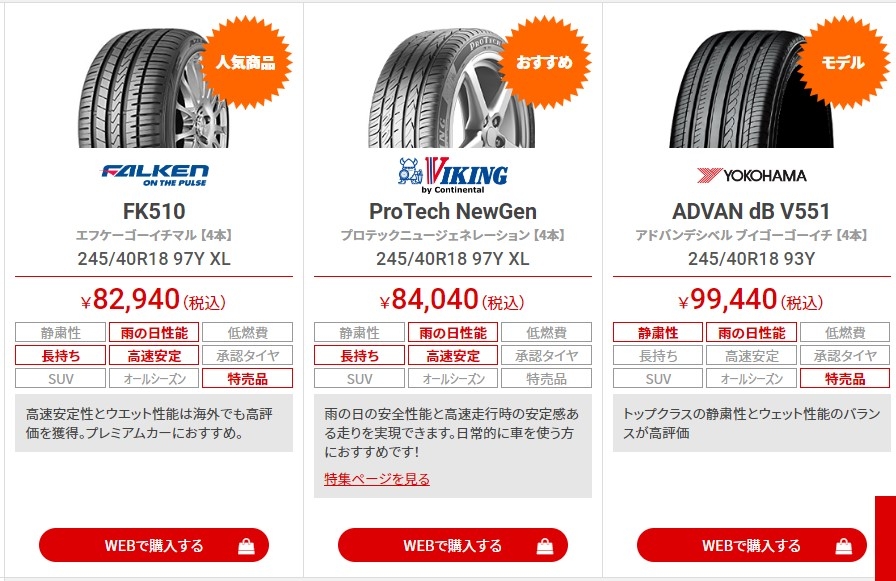 ヨコハマタイヤの旧モデル品の海外仕様モデルとなりまして、トップクラスの静粛性とウェット性能のバランスが高評価!(^^)!