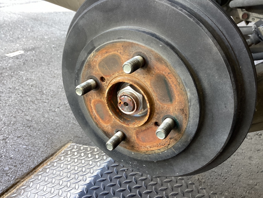 ホイールとの隙間に錆が出ると固着して取れなくなってしまいます。