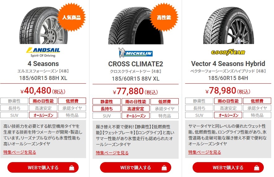 オールシーズンタイヤの最高傑作ともいわれるミシュランの商品で、【静粛性】【低燃費性能】【ウェットブレーキ】【ロングライフ】と高いサマー性能があり氷雪走行も認められたオールシーズンタイヤ!(^^)!