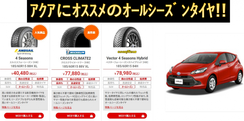 本日はTOYOTAアクアにオススメのオールシーズンタイヤをご紹介致します!(^^)!