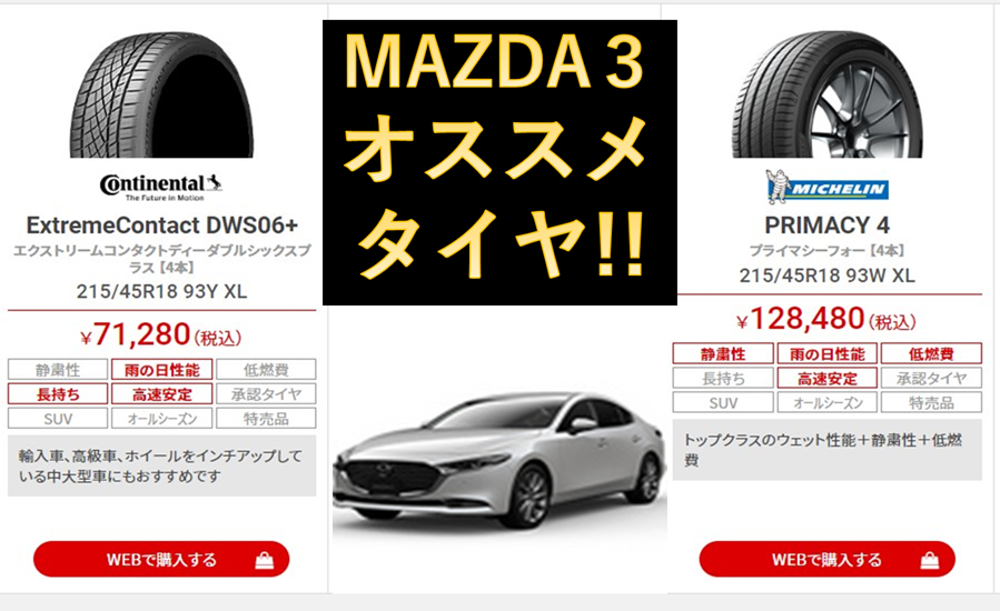 本日はMAZDA3のオススメ夏タイヤ(215/45R18)をご紹介致します!(^^)!