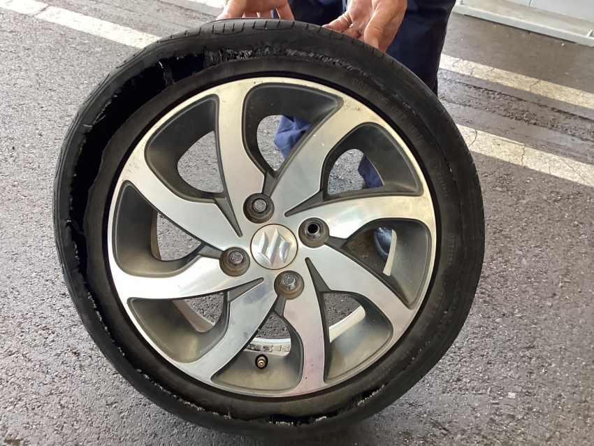 パンクした状態で走行をしてしまうと本来修理可能だったタイヤも修理不可になってしまいますし最悪当ページの写真のような状態になってしまう事も...