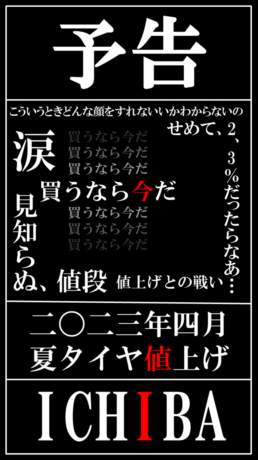 まだ夏タイヤを買おうか迷っているあなた。安く買うなら今ですよ!(゚Д゚)ノ