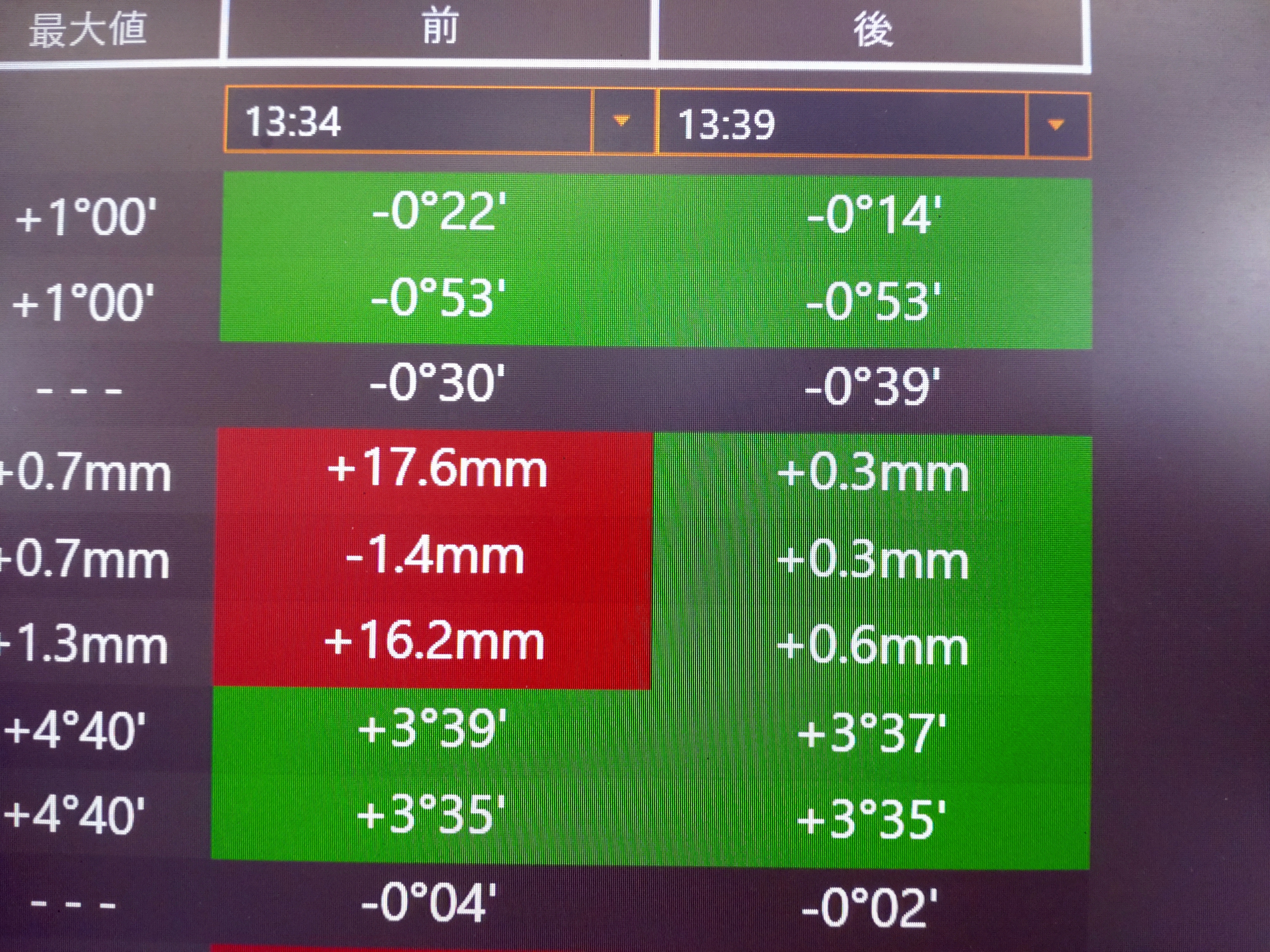 事実、どれだけアライメントが狂ってるのかを確認してみましたら...