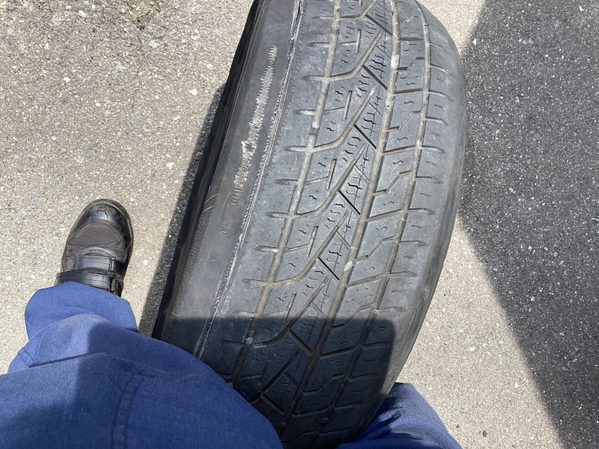 タイヤの減り方...特に画像左側部分が非常に削れてしまっている事が分かるかと思います
