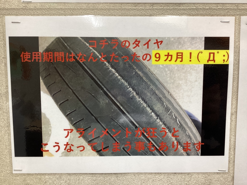 アライメントが狂うとタイヤの寿命が短くなります(。-`ω-)