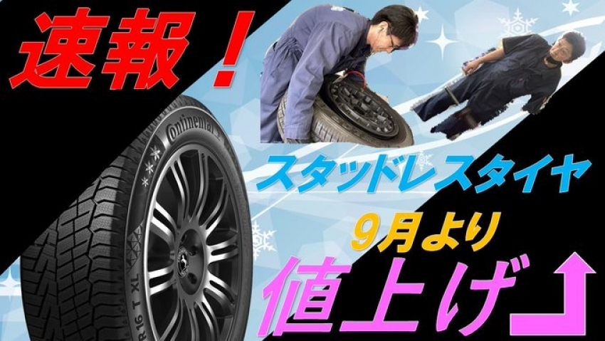 9月よりスタッドレスタイヤが値上がりします(。-`ω-)
