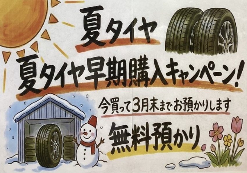 夏タイヤ早期購入キャンペーン中!(^^)!