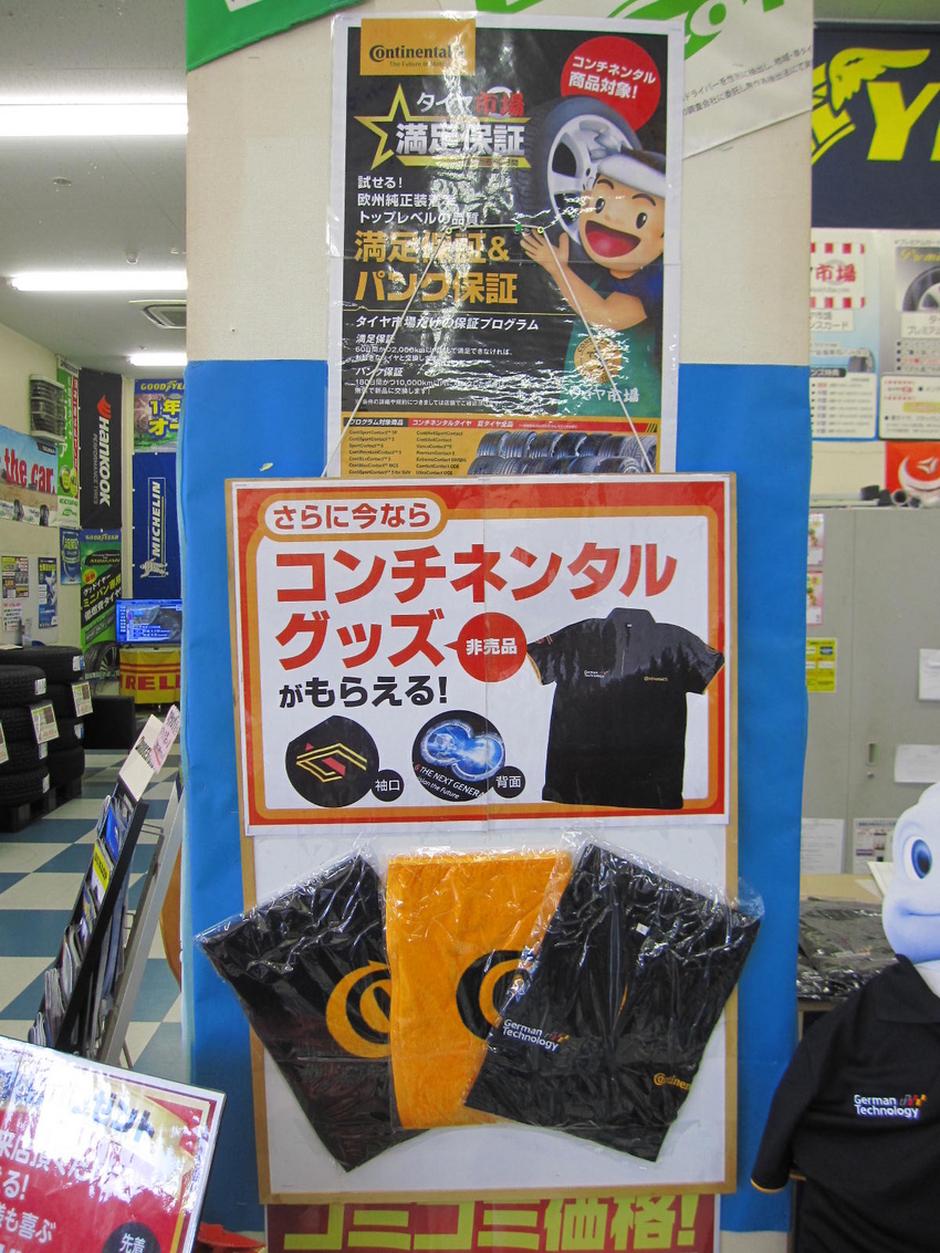 タイヤ市場では、コンチネンタルを購入頂くと満足保障が付く事と、