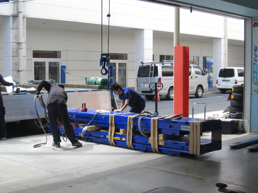 こんにちわ タイヤ市場駒形店に遂にアライメントテスター導入!!!本日から2日間にわたり設置取付となっております。