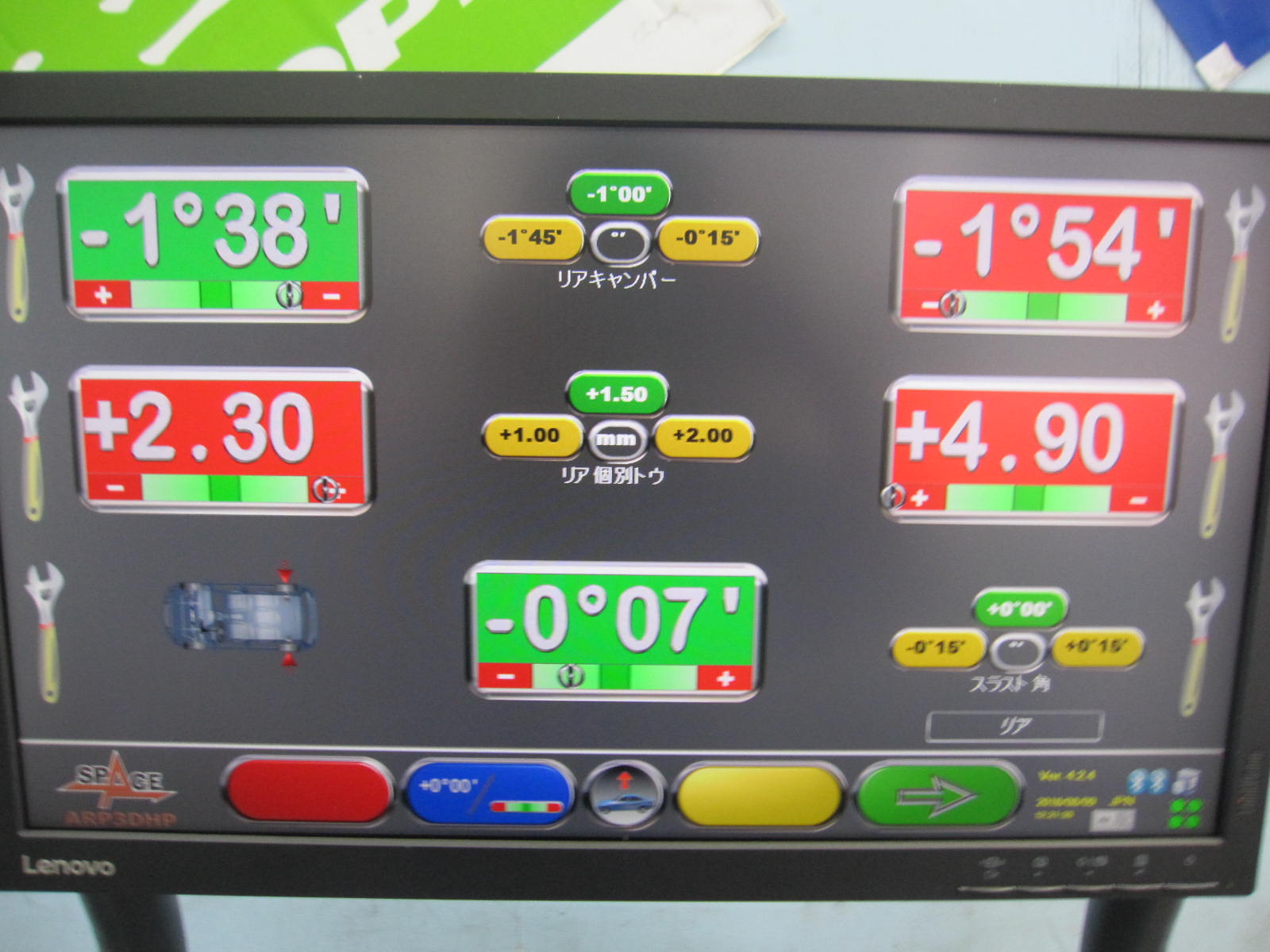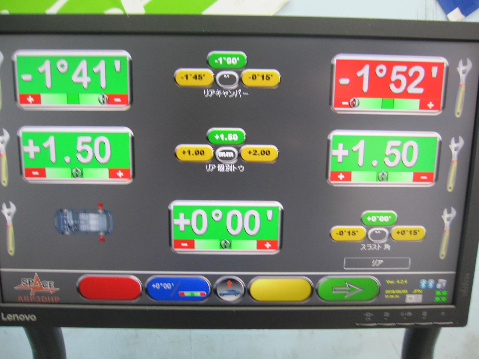 アライメントテスターにより、現在の状態を確認させて頂いた結果、