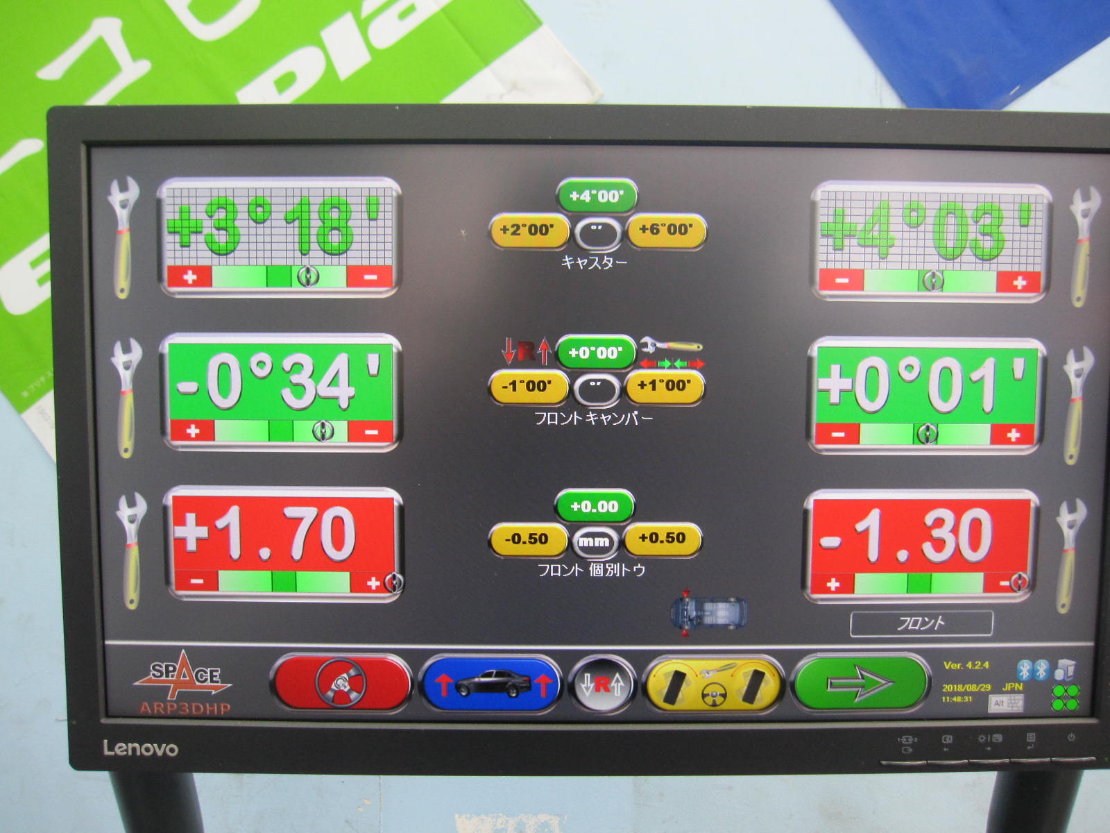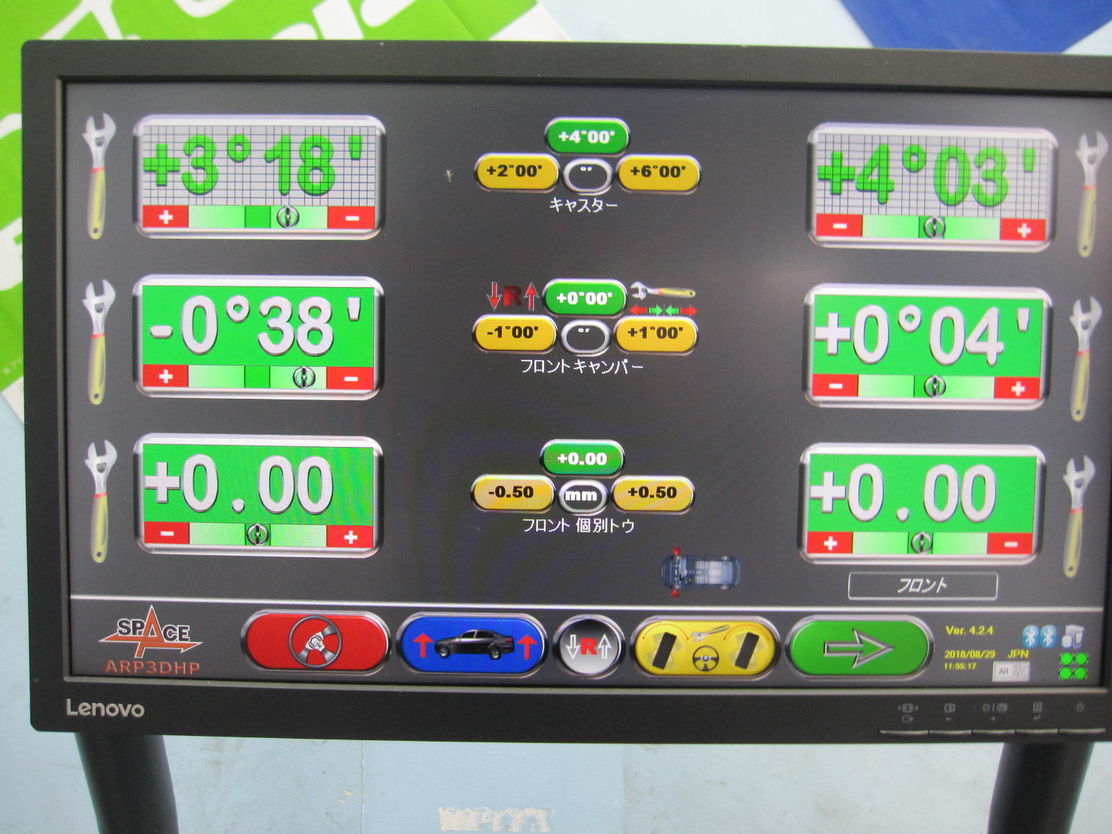 早速、アライメントテスターに入庫し、測定しました。