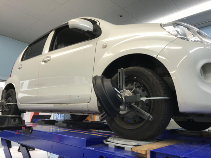 本日はパッソのお車のアライメント調整をさせて頂きました!