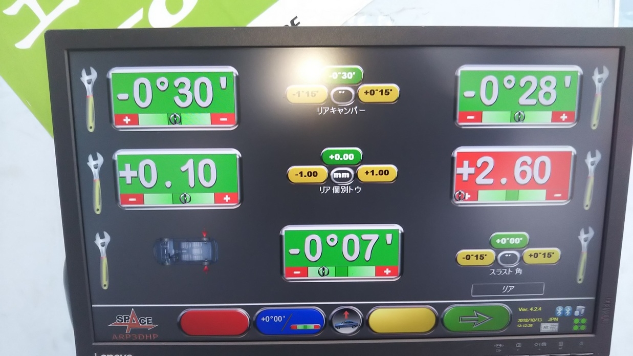 早速、タイヤを4本交換して、アライメントテスターで