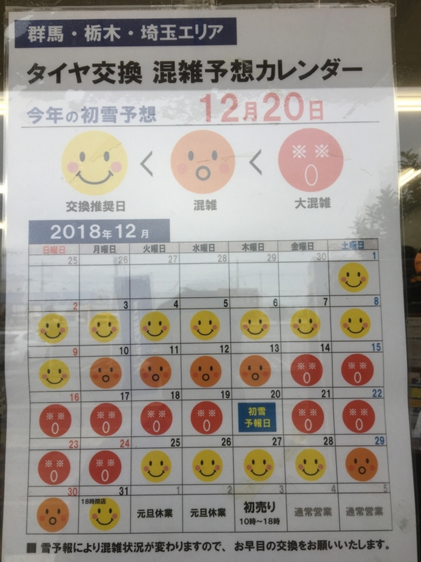 予報がでると大変混雑しますので、早めの装着で待ち時間も少なくご帰宅できますよ!