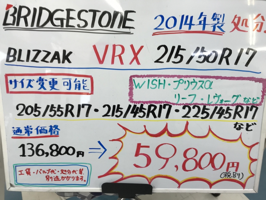 ブリヂストンのVRX!サイズが215/50R17の2014年製造品です!