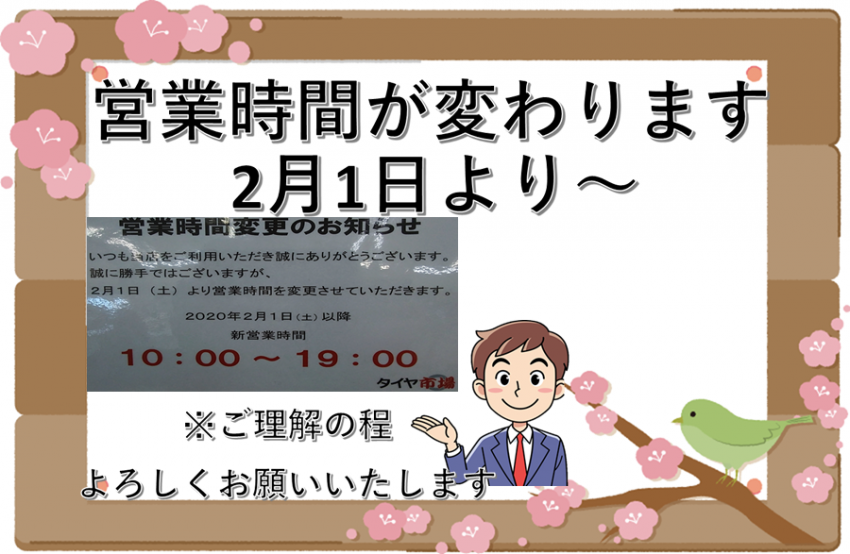 2月より新営業時間⇒AM:10:00~PM:19:00となります。