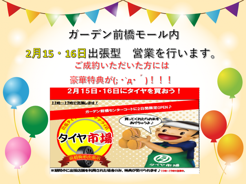 2月15・16日ガーデン前橋モール内出張型営業を行います(; ・`д・´)!!!