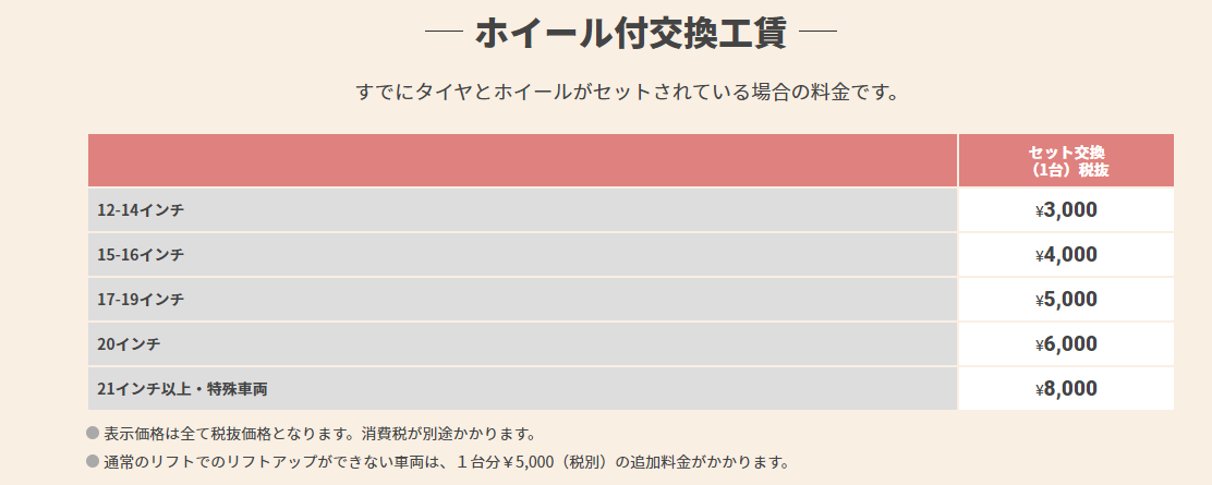 付け替え料金は下記の通りです!