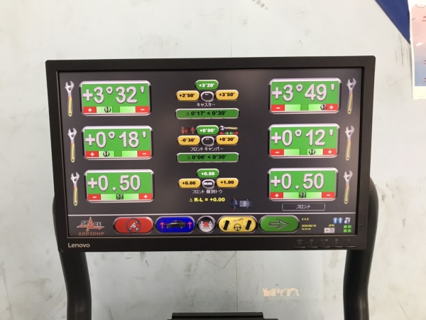 基準データーもとに車両基準値にて調整を行います。