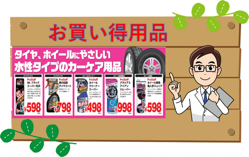タイヤ市場各店では、洗車の際ケミカル用品を取り扱っております。