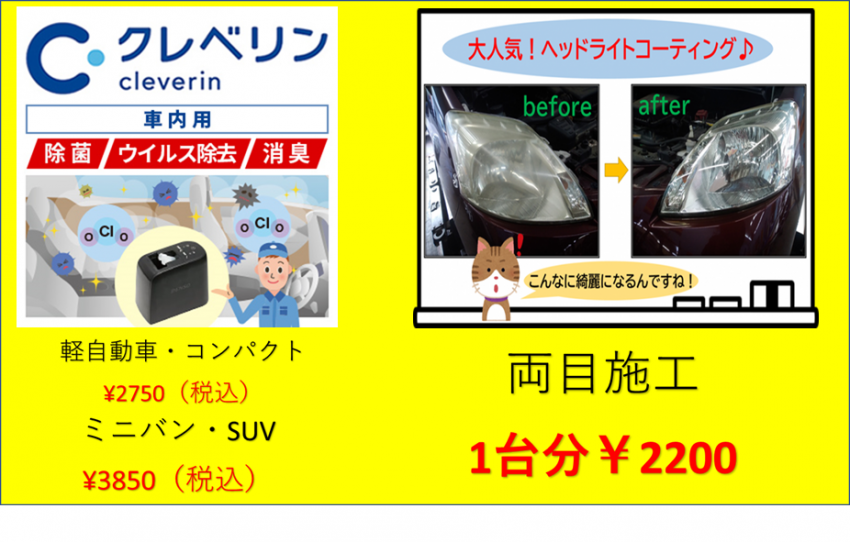 ウイルス対策&ヘッドライトを綺麗にしたいお客様