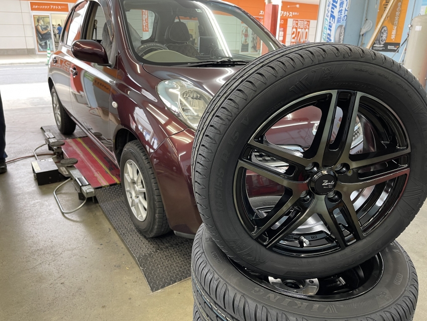 マーチのタイヤ交換! ホイールセット【ジーマイストVS1 BP】