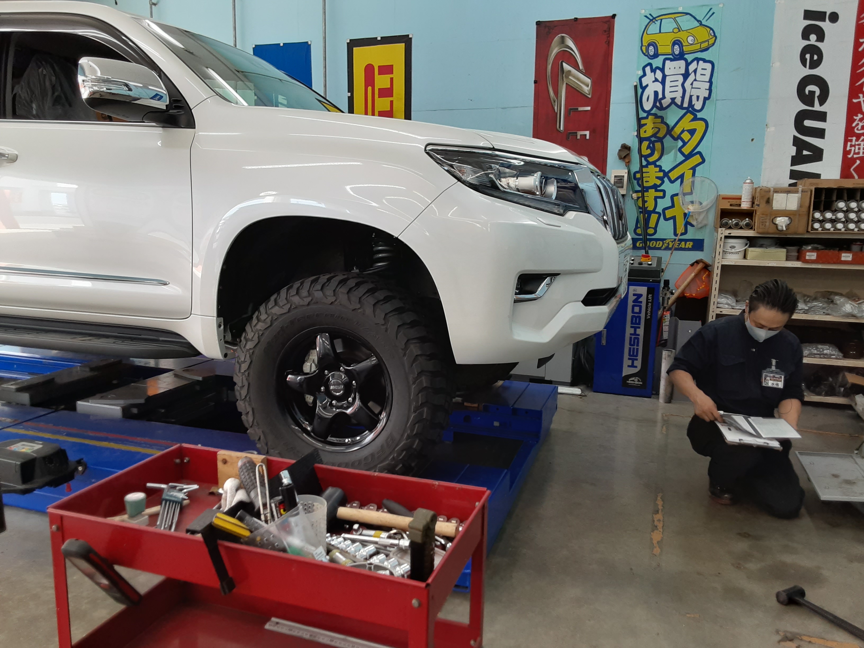 リフトアップ仕様のランドクルーザープラド×アライメント調整