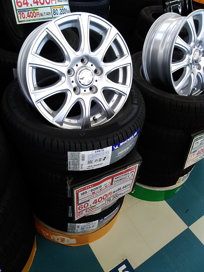 ちなみに写真の185/60R15のサイズですと、FIT・アクア・シエンタ等が適合車種となっております!