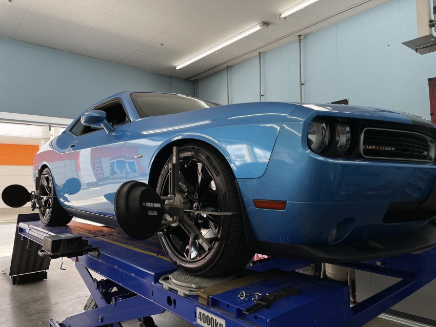 ダッジ チャレンジャーSRT8 ホイールアライメント調整!