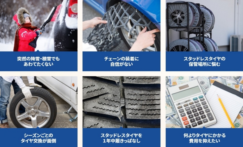 ・スタッドレスに履き替える必要が無いので、突然雪が降っても安心
