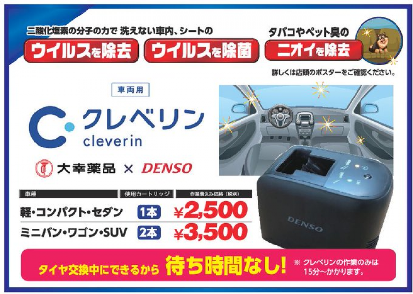 当店では車内の中から除菌が出来るクレベリンが出来ちゃいます!(^^