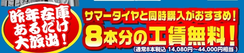 夏タイヤと同時購入なら、工賃8本分が無料になってしまうんです!!
