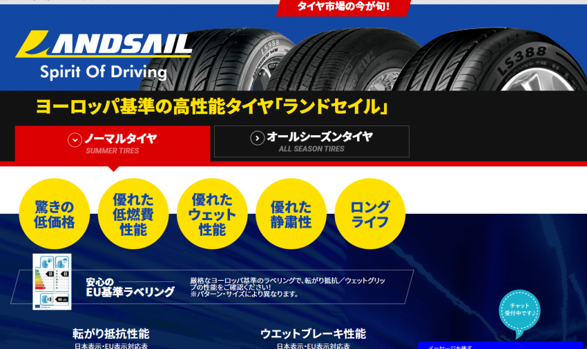 ヨーロッパ基準の高性能タイヤ「ランドセイル」