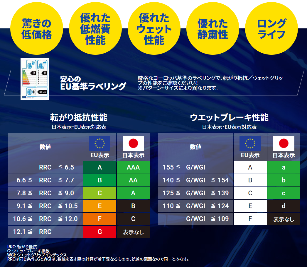 転がり抵抗/ウェットグリップの性能をご確認ください!