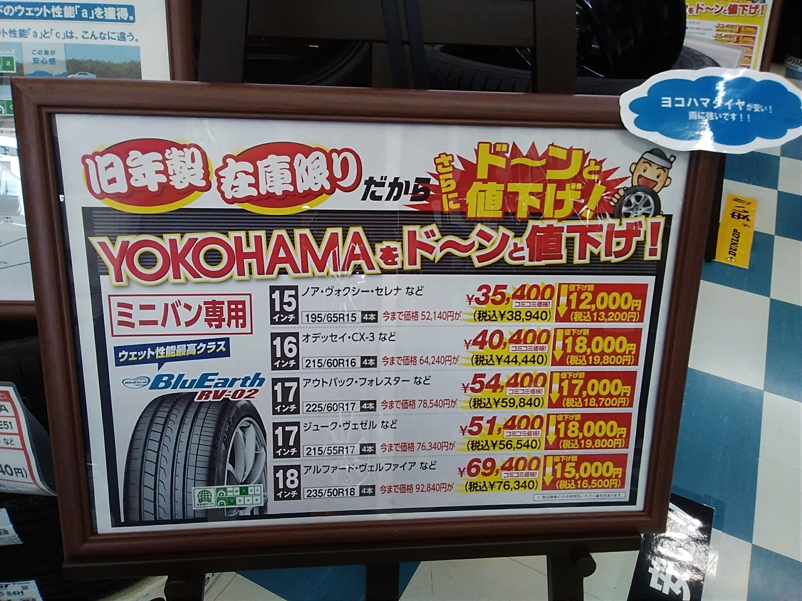 ダンロップ・トーヨー・ヨコハマなどのタイヤがとても安く手に入るチャンスです!!