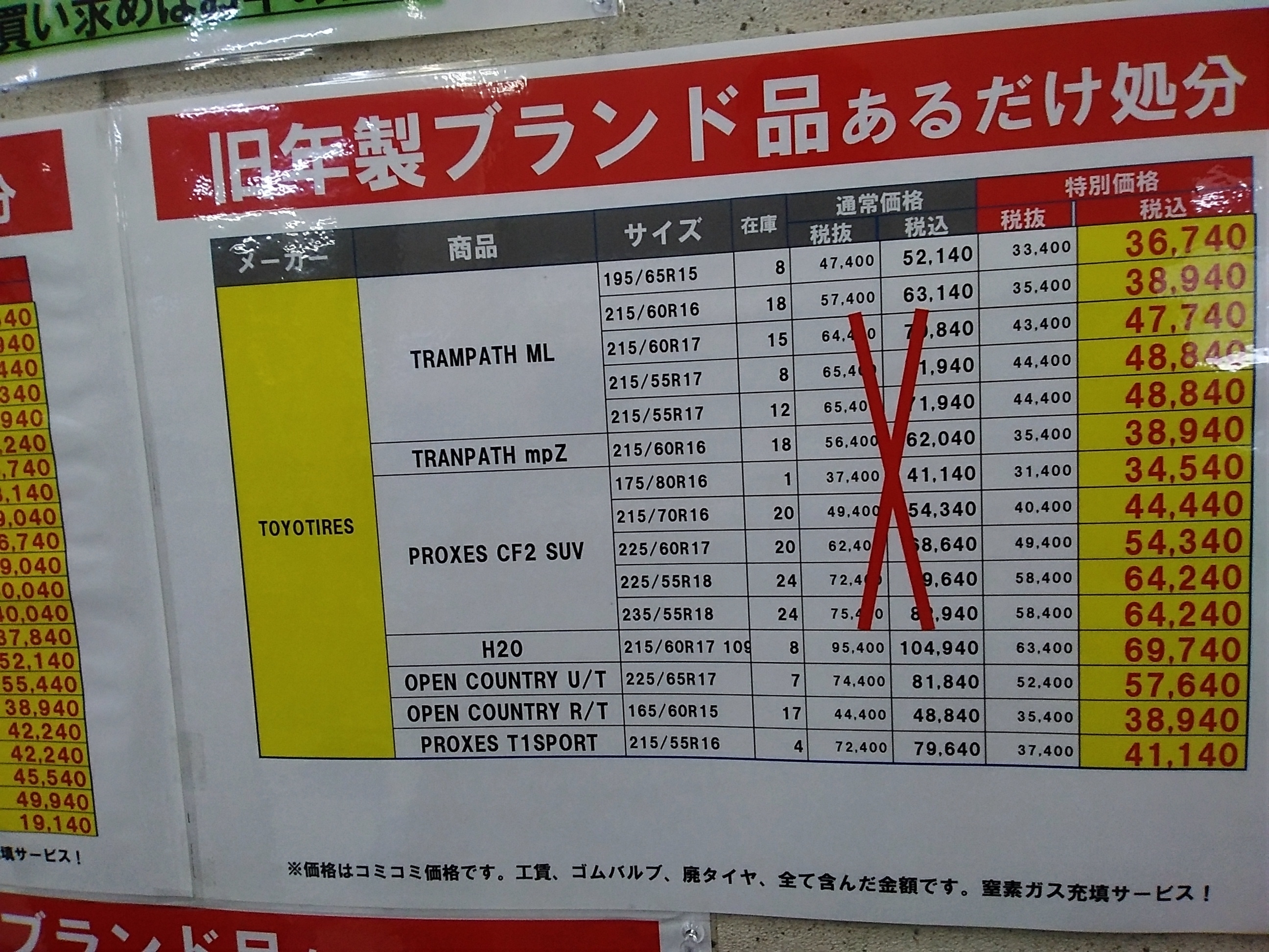 国産タイヤが定価の半値以下の金額で手に入れられるチャンスです!!