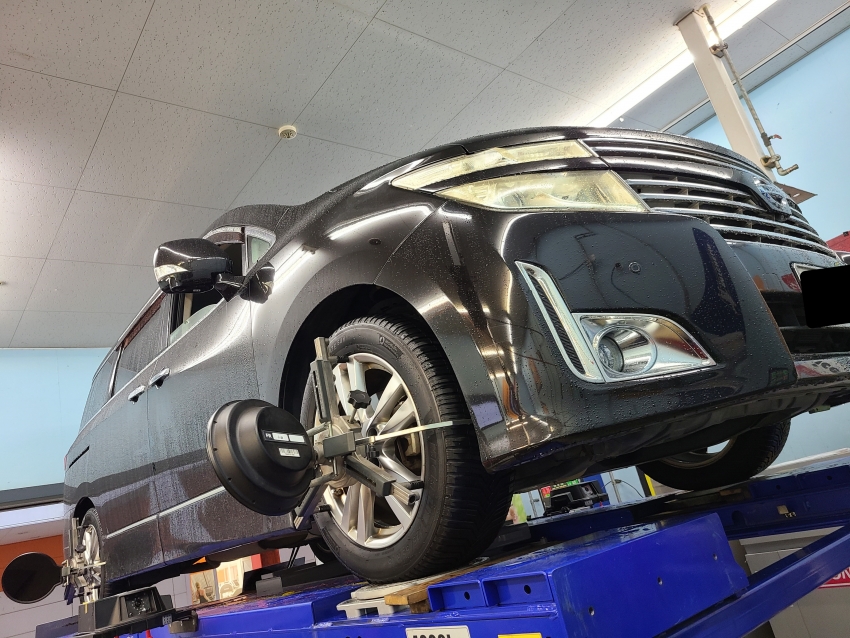 今回は日産 エルグランドのホイールアライメントを調整いたしました。