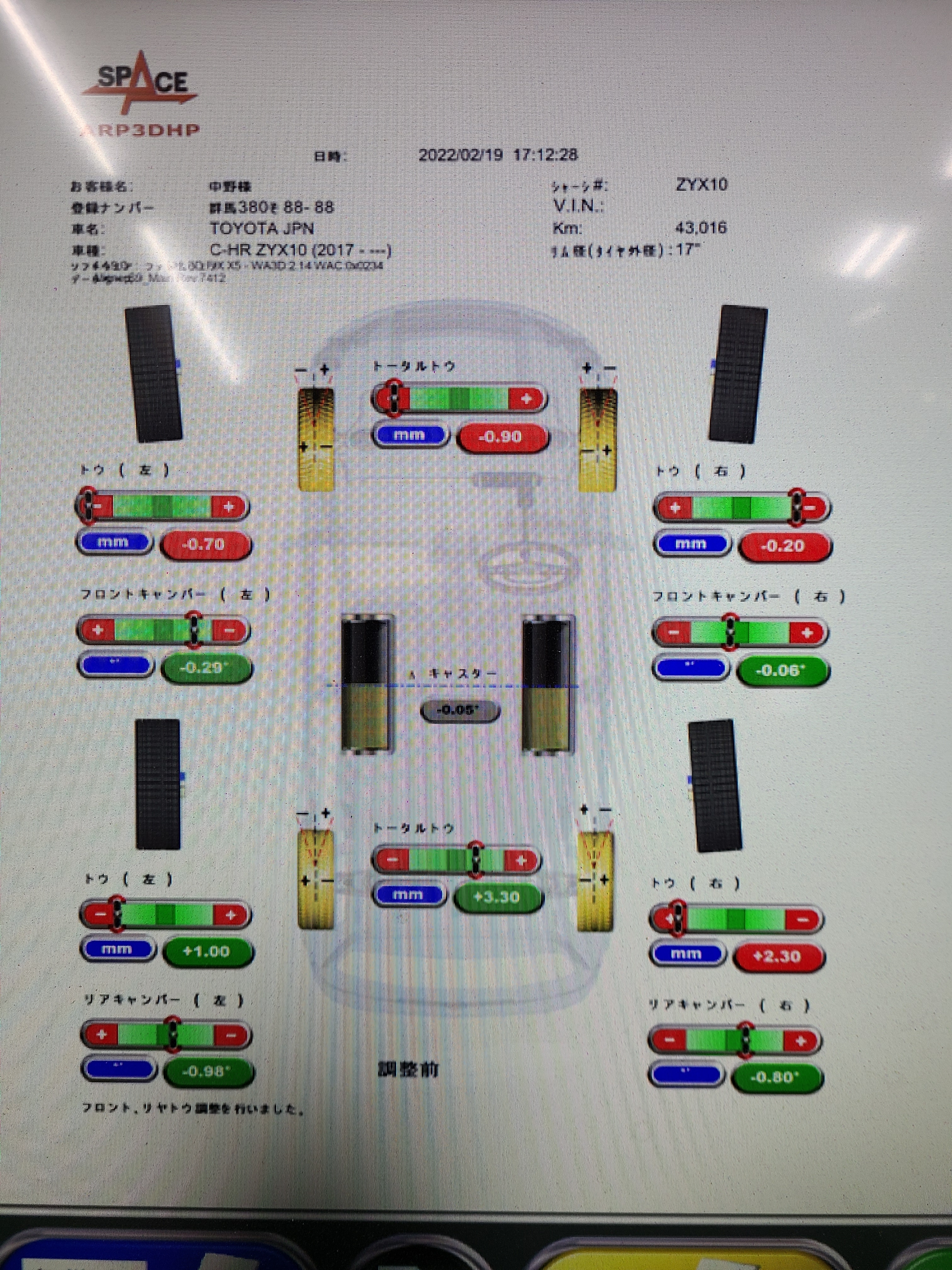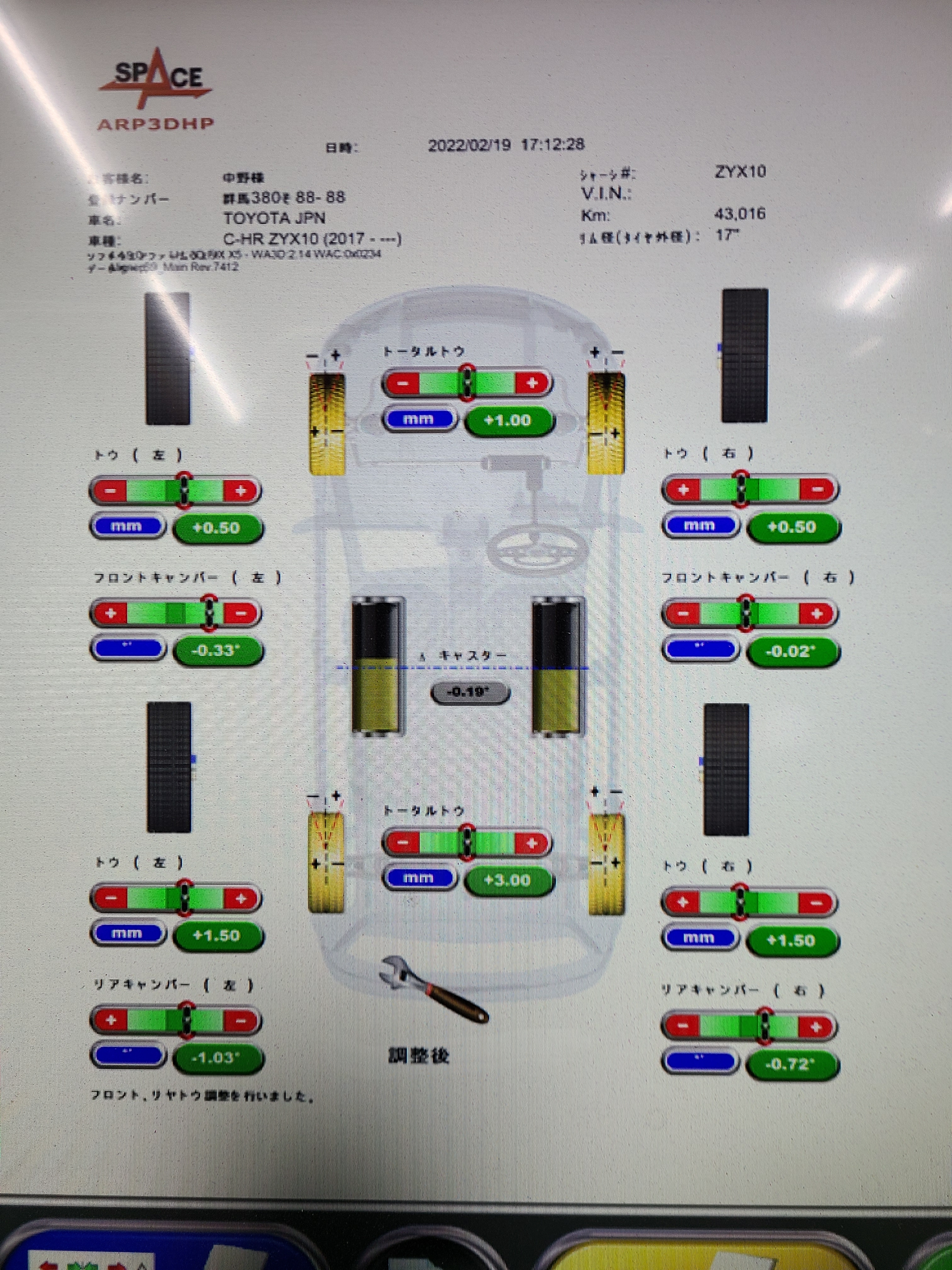 先日、C-HRのアライメント調整をしたので