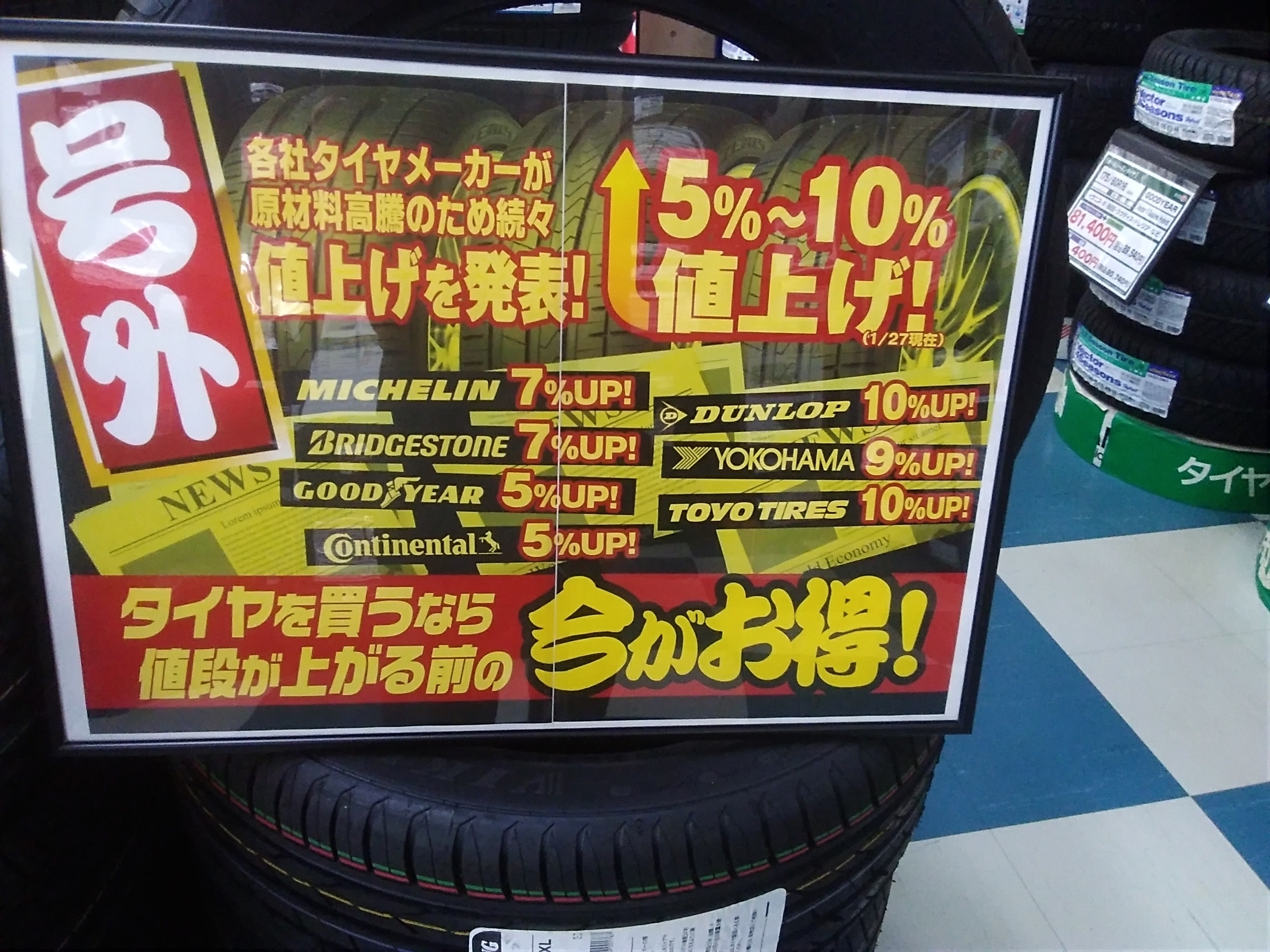 タイヤ値上げまであと少し⁉緊急セール開催中!!