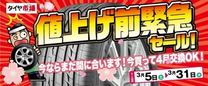 4月から各メーカーがタイヤの値上げを発表しており、4月が近づいています!