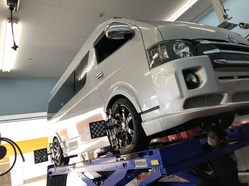ハイエースにお乗りのお客様よりアライメント調整の作業承りました(; ・`д・´)