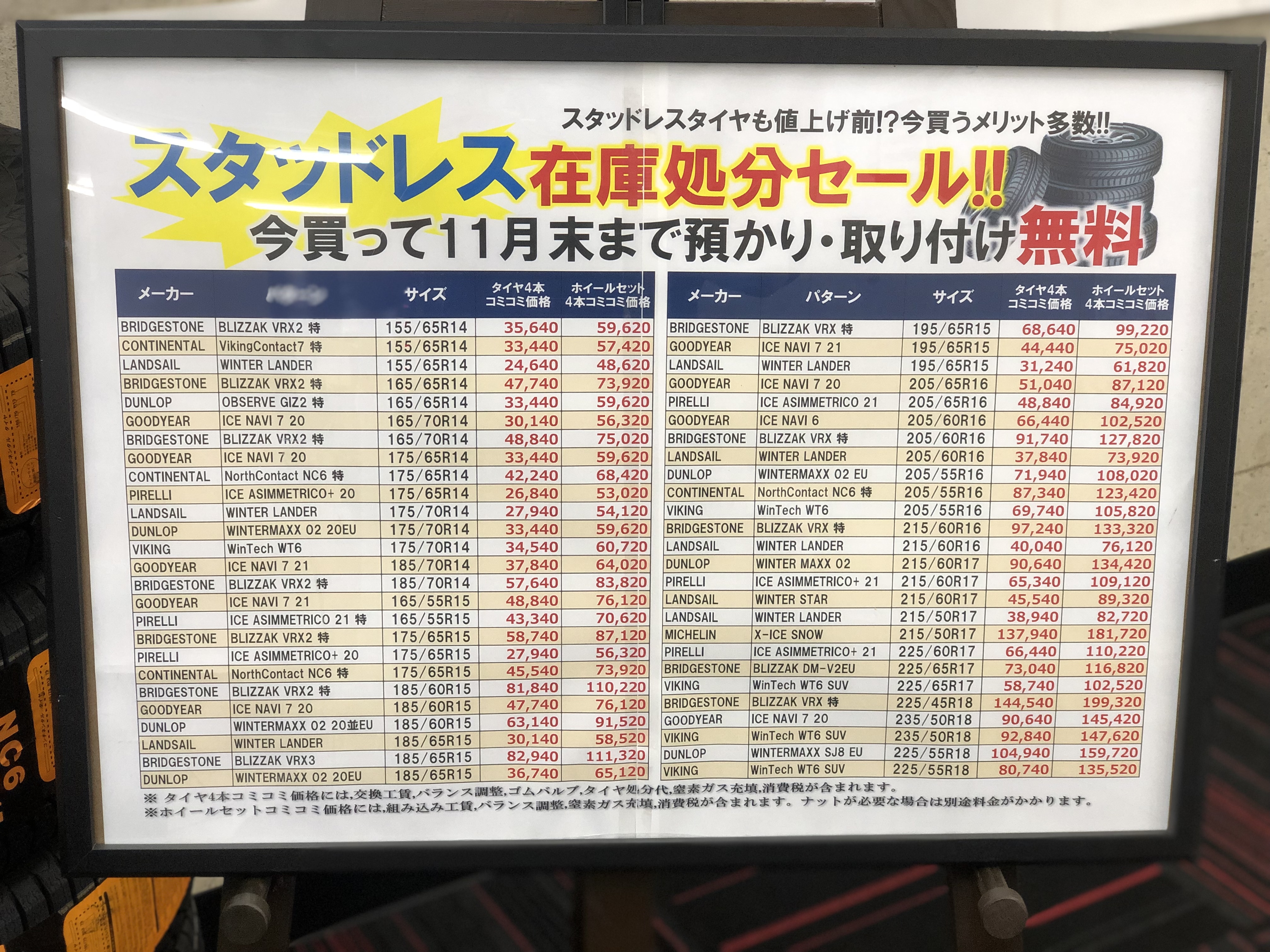 ・11月末まで保管・取り付け無料!!