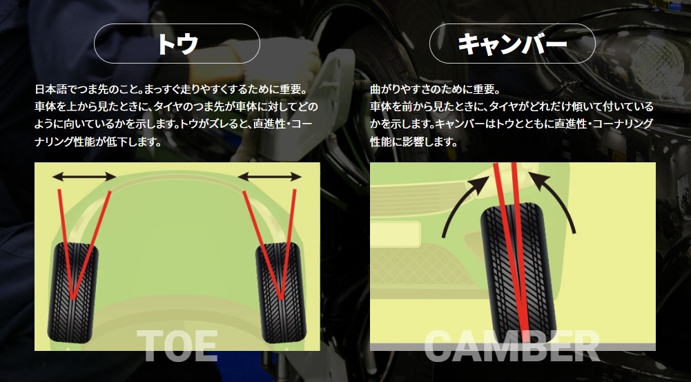 そもそもアライメントとは・・・!タイヤの角度の調整です٩( ''ω'' )و