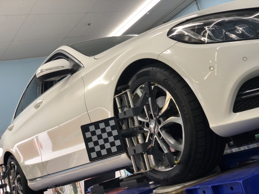 W205 メルセデスベンツ Cクラスのアライメント調整を作業させていただいております!!!