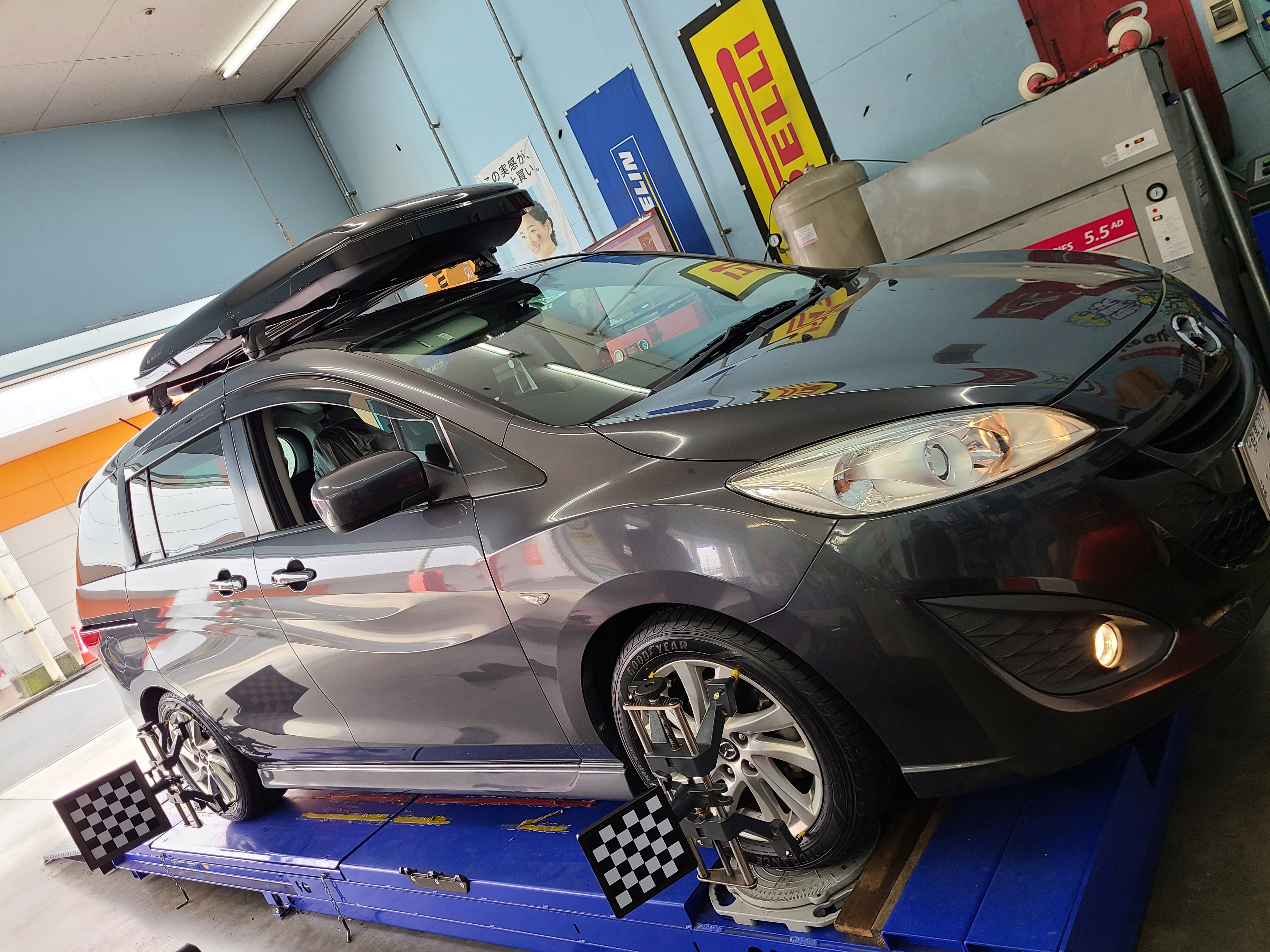 マツダ プレマシーにお乗りのお客様よりアライメント調整の作業承りました(; ・`д・´)