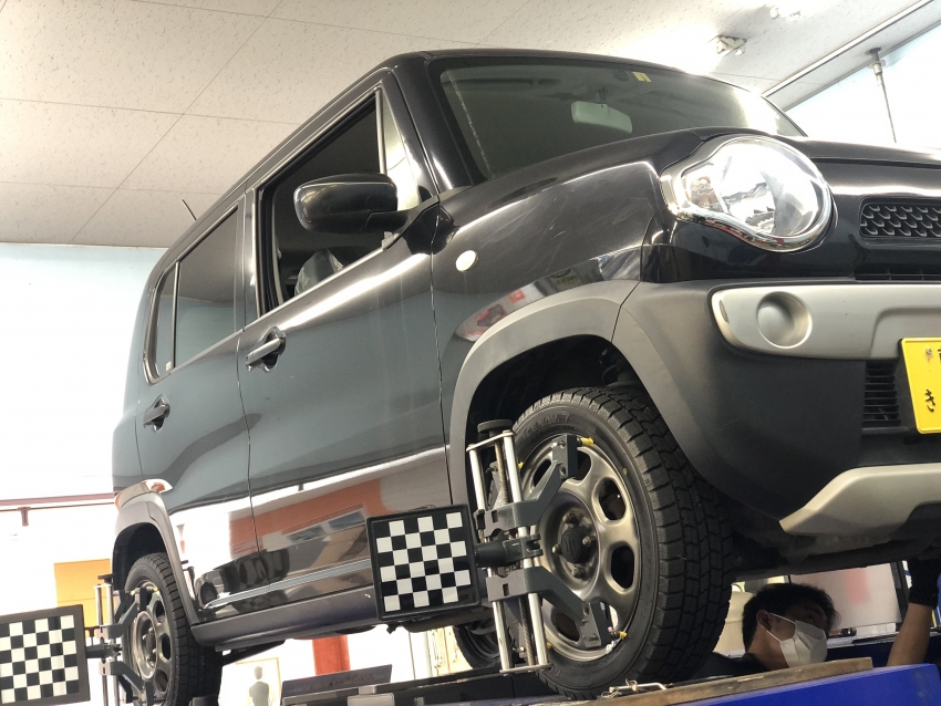 本日、ハスラーのアライメント調整の作業をさせていただきました(; ・`д・´)