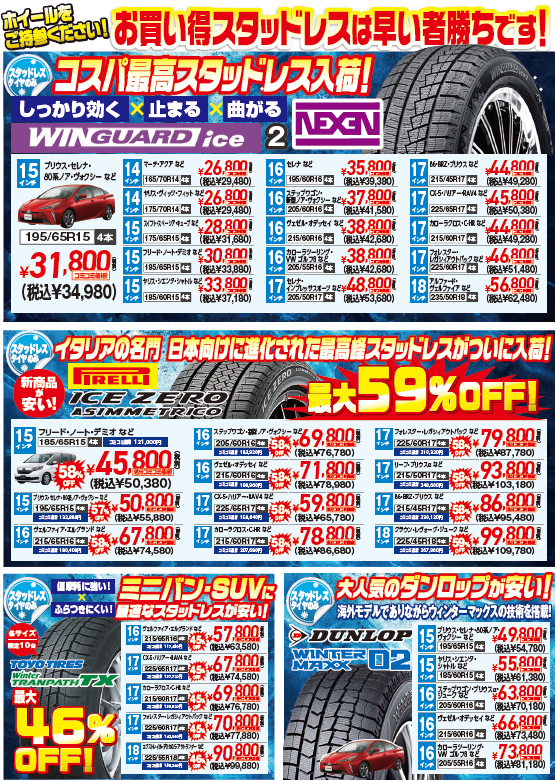 スタッドレス即売会&オールシーズンタイヤ祭り開催中!!